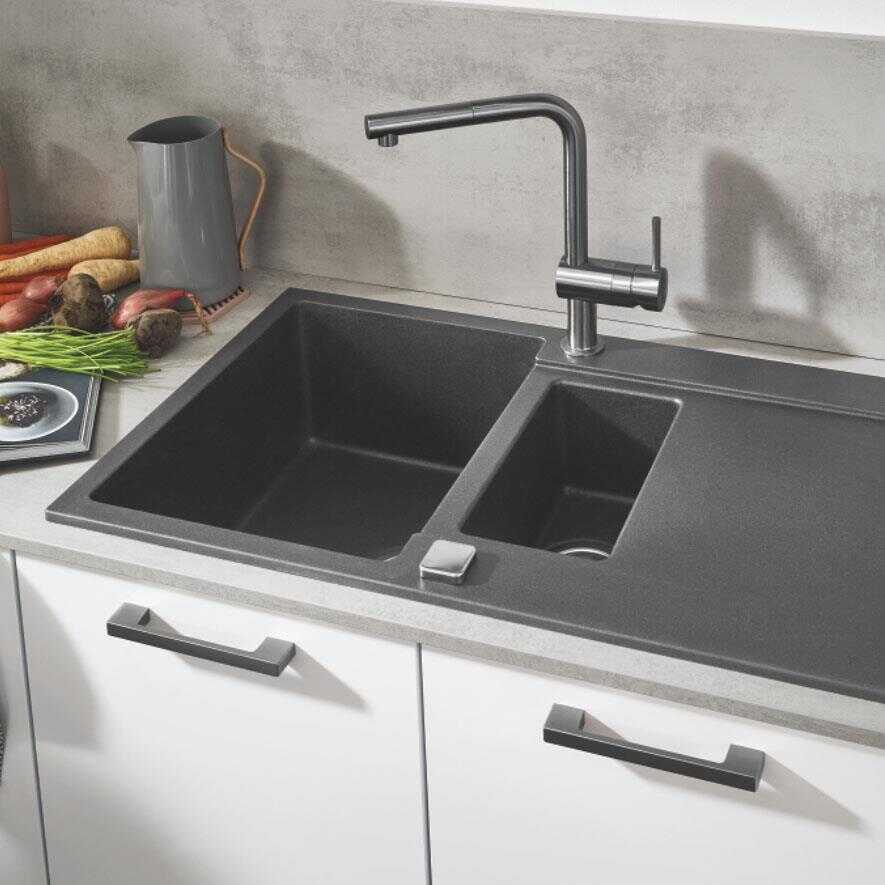 ◌ Kompozit: %70 - 80 doğal granit minerali (kuvars), akrilik reçine ve sertleştirici