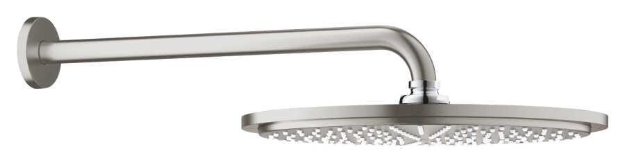 Cömert duvara monte edilen GROHE Rainshower Cosmopolitan 310 Tepe duşu seti, 380 mm kollu GROHE SuperSteel ile her banyoya anında tasarımcı stili ve üstün performans katar. Sistem ayrıca GROHE'nin en son teknolojisiyle donatılmıştır. GROHE DreamSpray, her başlıktan su akışının eşit olmasını sağlar – duşun yumuşak PureRain Spreyi'nin keyfini çıkarmak için mükemmeldir – GROHE EcoJoy ise su kullanımını azaltır ancak tam duş keyfini garanti eder. DropStop, yatay konumdayken ve vana kapalıyken tepe duşundan herhangi bir damlamayı önleyen harika bir fonksiyondur. Kullanışlı silikon SpeedClean nozulların kir ve kireçten arındırılması kolaydır. Inner WaterGuide, duş yüzeyinin ısınmasını önlemenin yanı sıra mükemmel dayanıklılık için çizilmeye karşı dayanıklı ve temizlemesi kolay GROHE SuperSteel yüzeyini korur.
